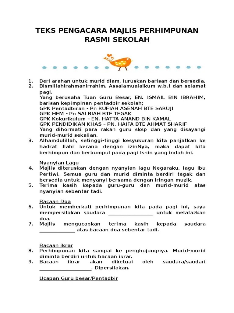 Contoh Teks Pengacara Perhimpunan Pagi Pdf